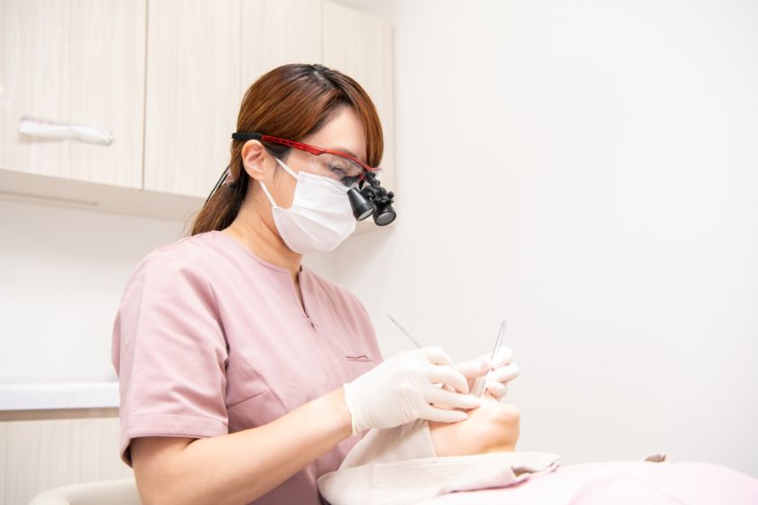 歯周病の予防や治療では、歯の定期的なメンテナンスがとても大切です。歯周ポケットの深さを測り、出血や歯ぐきの下がり具合、歯の揺れなどを確認していきます。