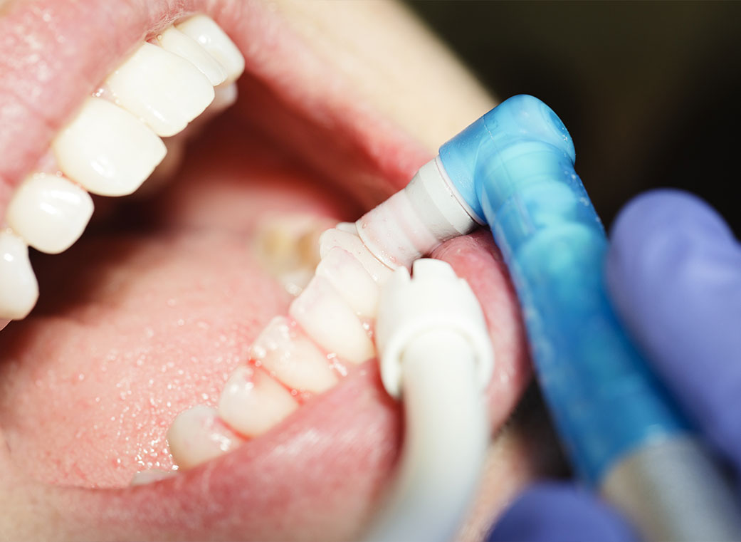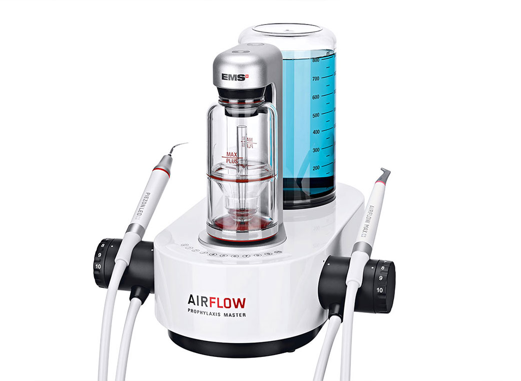 ホワイトニングを適切に行うために、プラークや目に見える汚れがある場合は、EMSエアフローを用いて除去します。