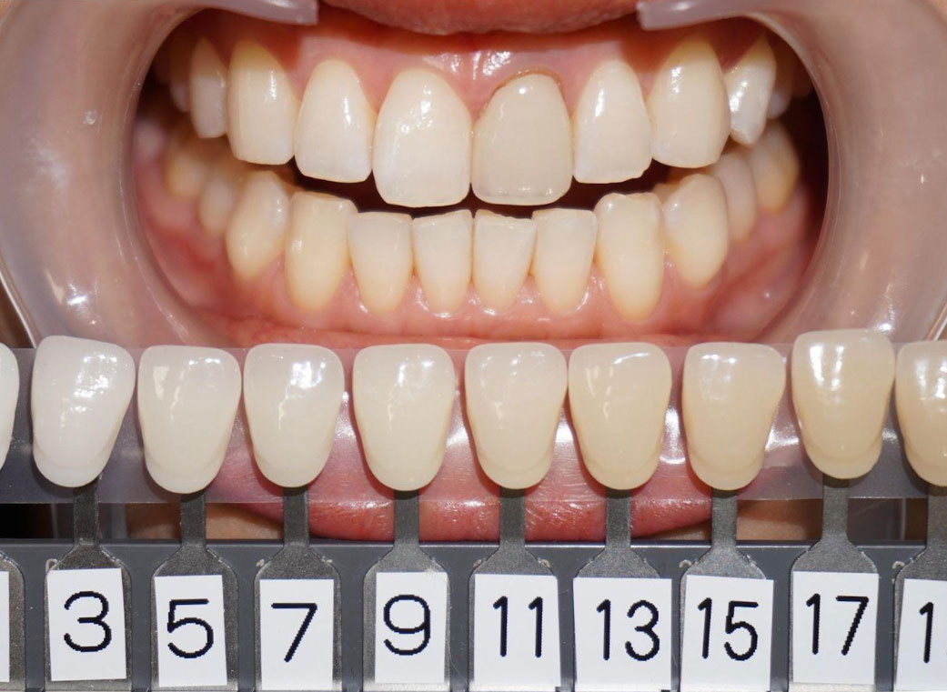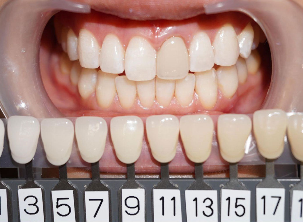 A 平均5〜10シェード明るくなります。シェードガイド(歯の色の見本)で確認します。
